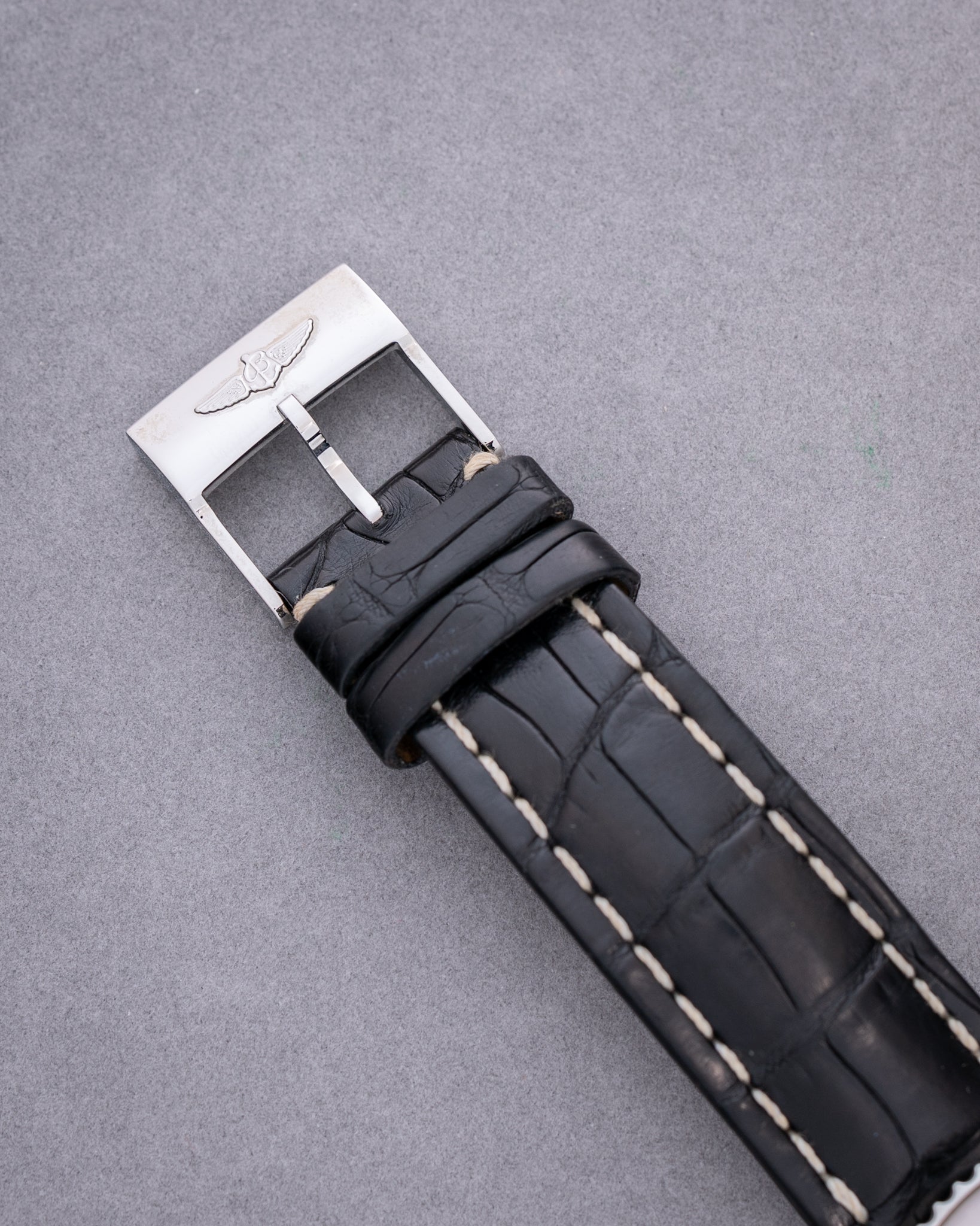✔️ Watch on upgraded alligator strap with pin buckle. Additional Breitling rubber strap. Box and accessories minus the warranty card.