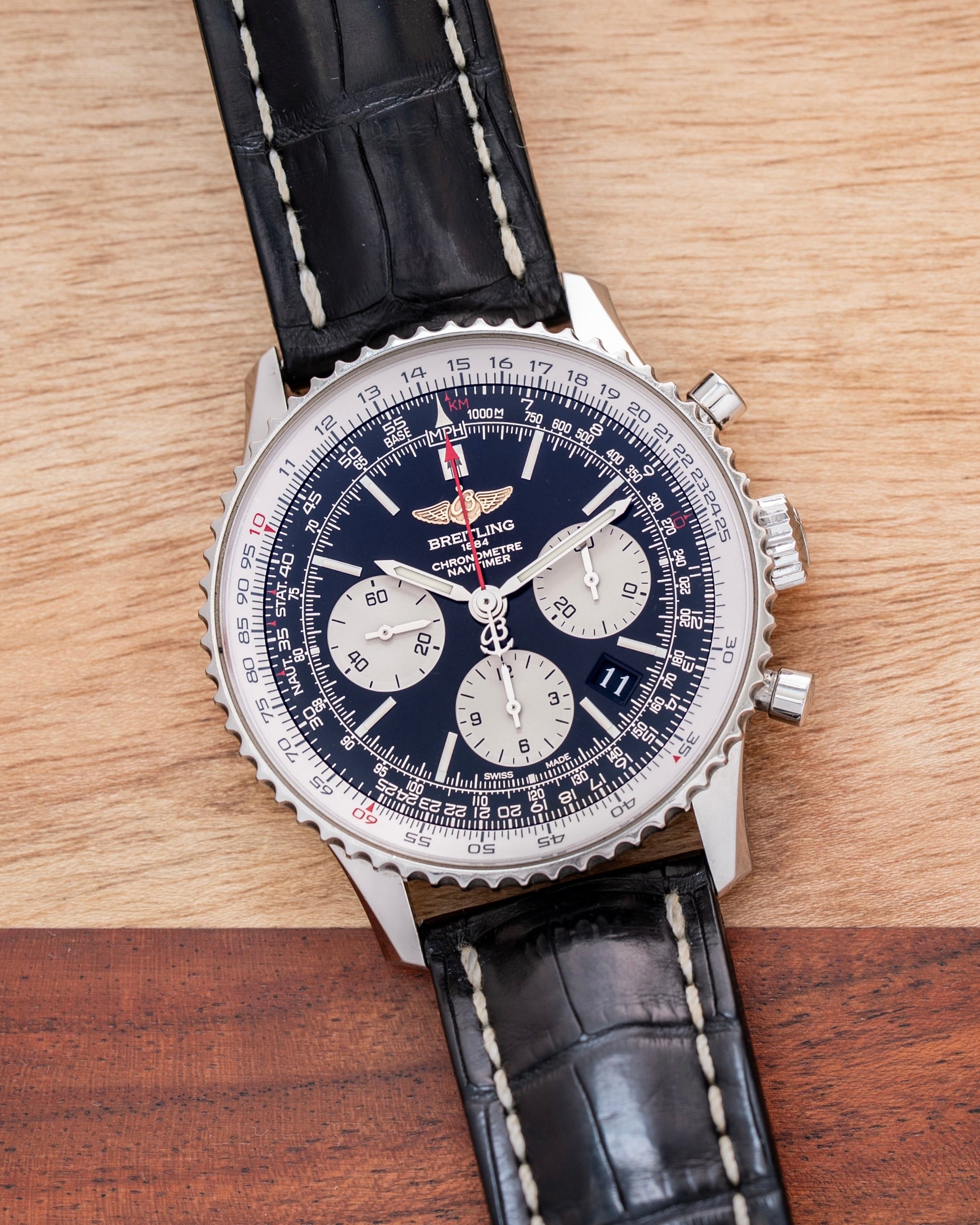 Probably, the best Navitimer model, the Breitling Navitimer 01 is a praised and iconic pilot's watch featuring an in-house Breitling Calibre 01 movement with COSC certification, known for its accuracy and smooth, satisfying pusher action. The 43mm case wears comfortably and is surprisingly versatile, pairing well with both casual and smart-casual wear. Key features include a functional slide rule bezel, a classic contrasting dial with a date window, and a high-quality leather strap.