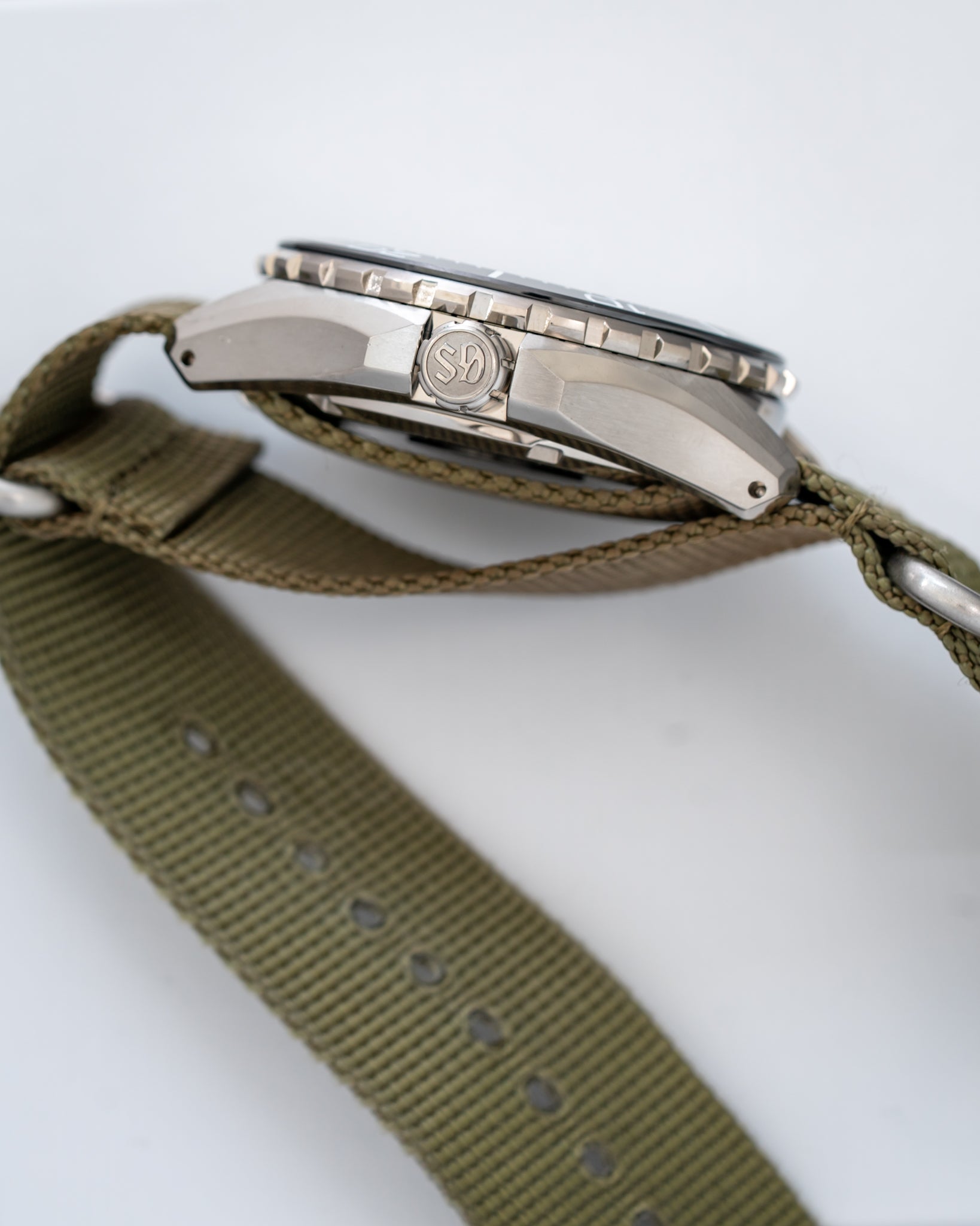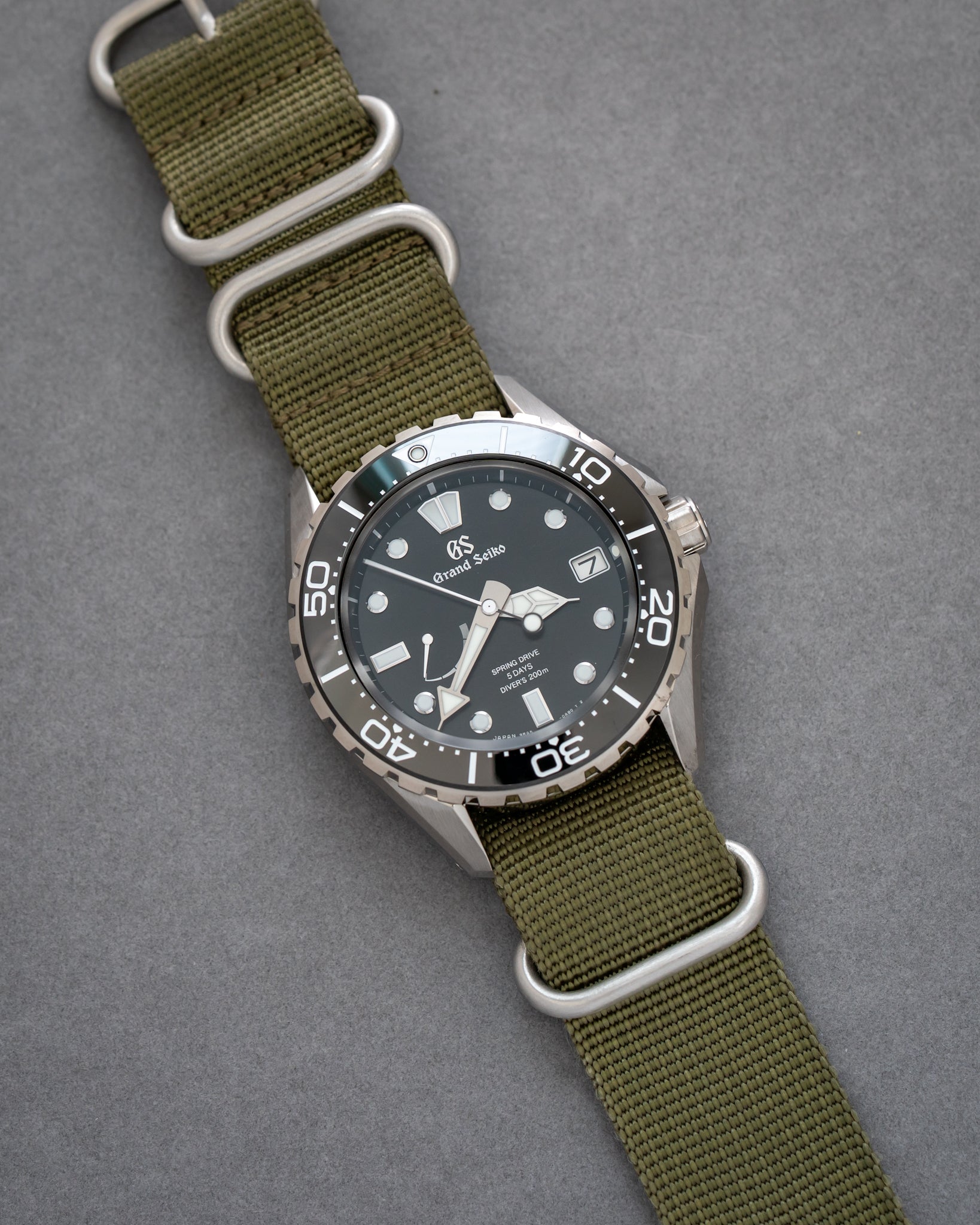The Grand Seiko SLGA015 "Black Stream" is a high-end Evolution 9 collection diver's watch featuring the Spring Drive Caliber 9RA5, a durable high-intensity titanium case with a ceramic bezel, and a distinctive black dial inspired by the powerful Kuroshio Current. This GS is praised for its exceptional legibility, precise and smooth-gliding Spring Drive movement with a 5-day power reserve, and refined luxury finishings.