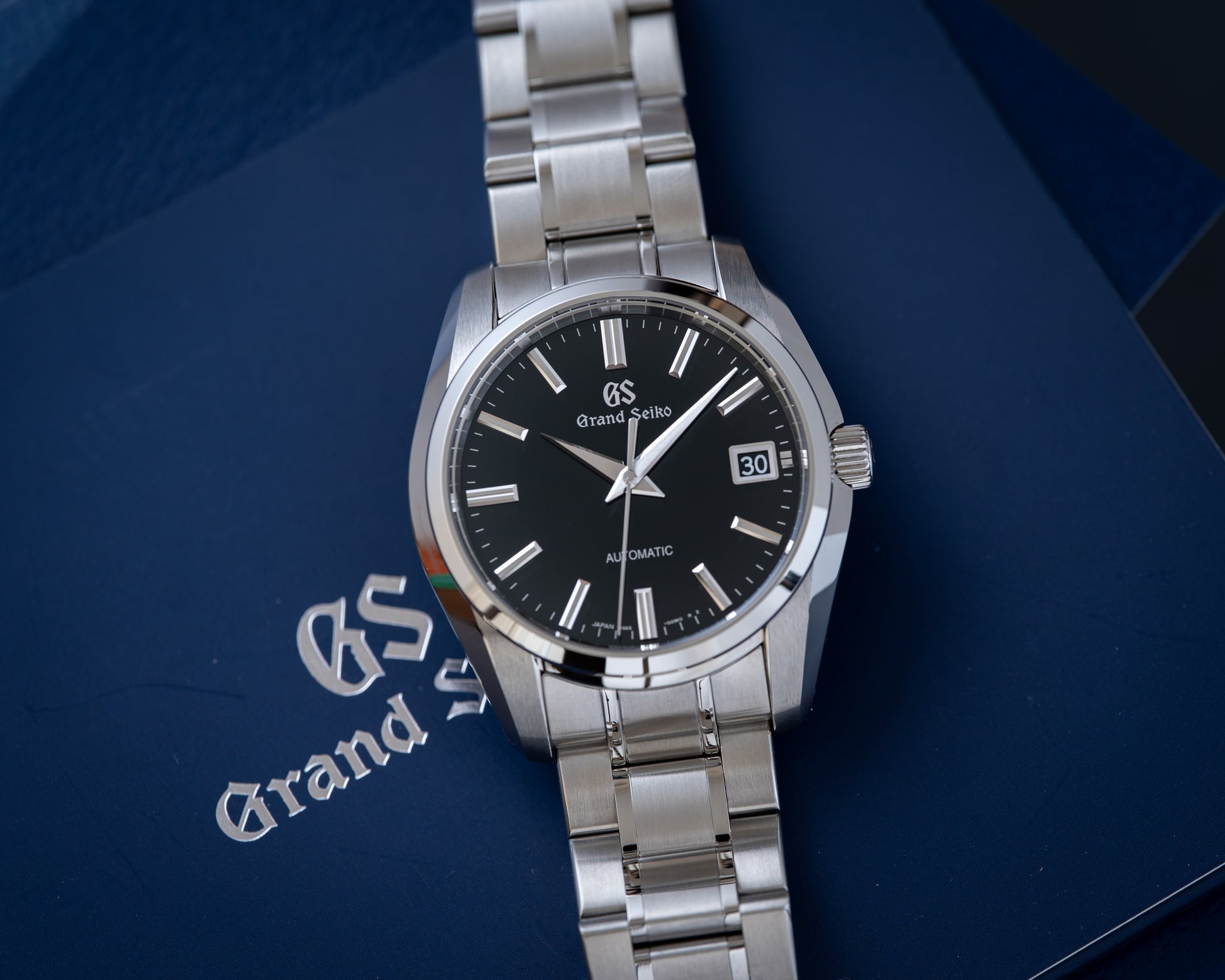 This GS features a black dial with strong three-dimensional indexes that are tightly arranged to the outside of the calendar frame on a 40mm stainless steel case. The watch is powered by the automatic 9S65 caliber that delivers an accuracy of +5 to –3 seconds a day with 3-days of power reserve.