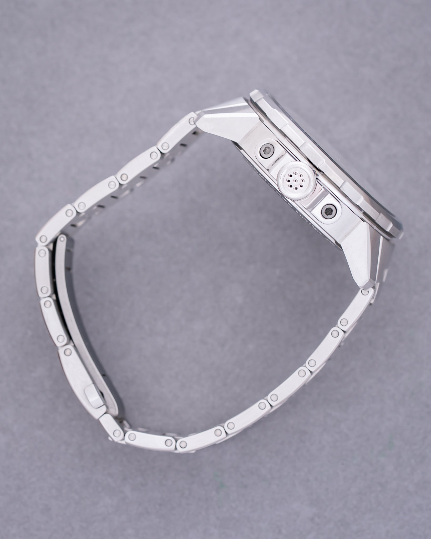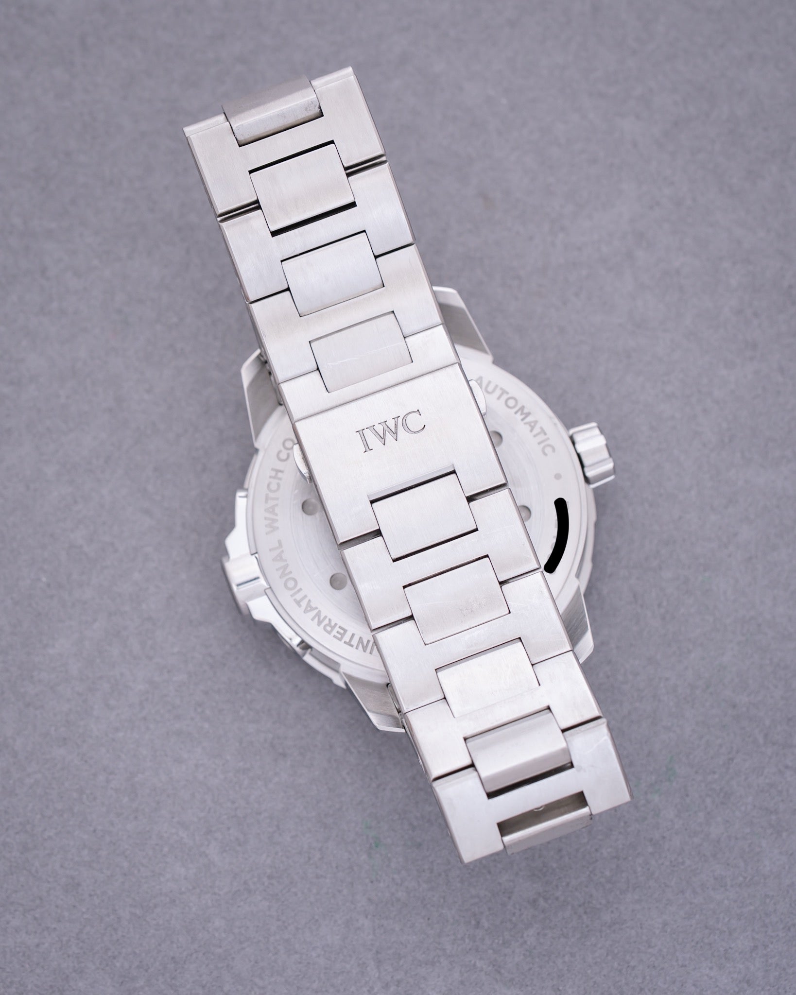 The current gen IWC Aquatimer is a robust stainless steel dive watch featuring a 300m water-resistant case and a 5-day power reserve from its IWC-manufactured 32111 caliber. Key highlights include the innovative SafeDive external/internal bezel system for safety, a highly legible matte black dial with luminous markers, and a quick-change strap system. Solidly built with functional design, the satisfying feel of the bezel mechanism, and the overall comfortable and balanced wear on the wrist.