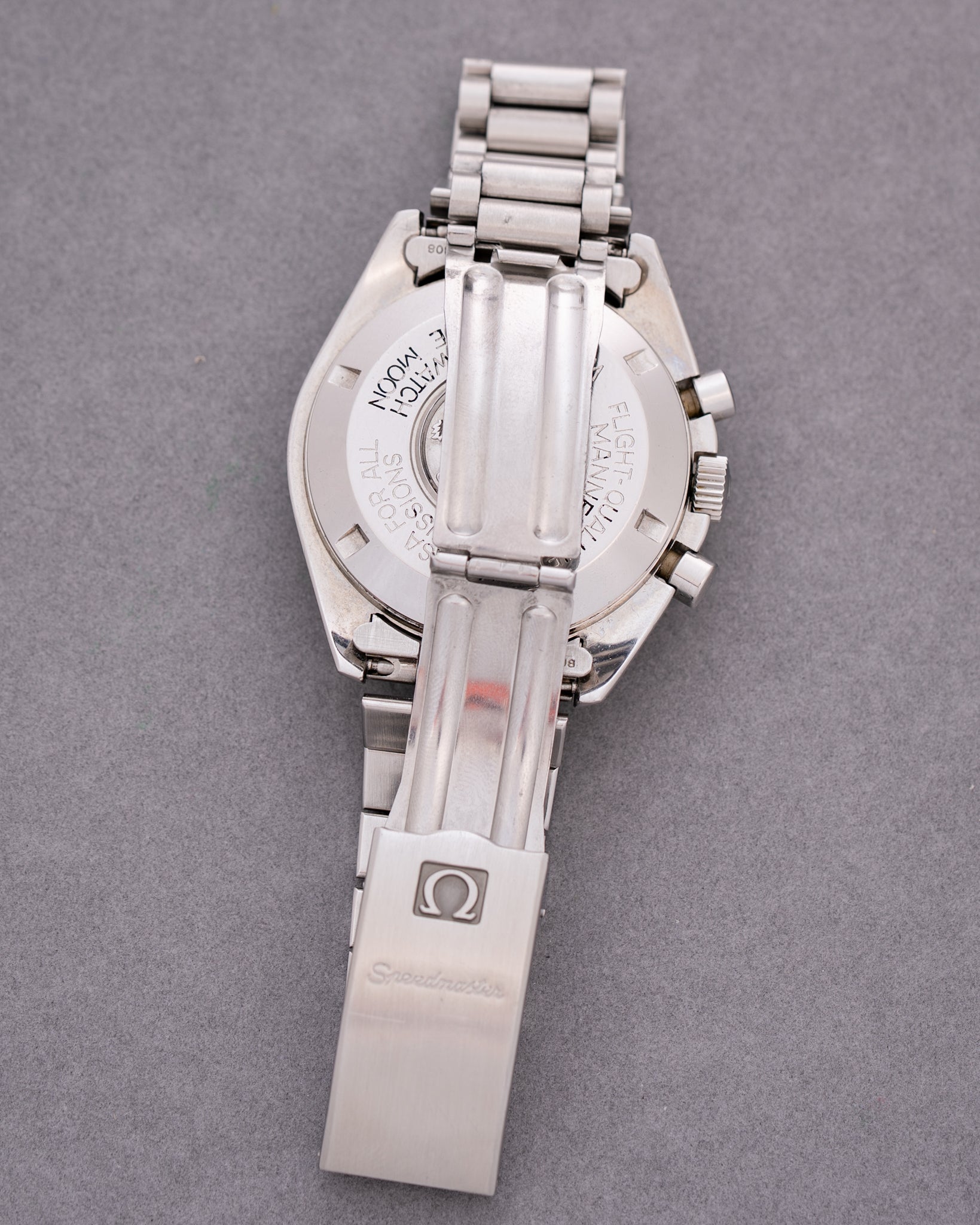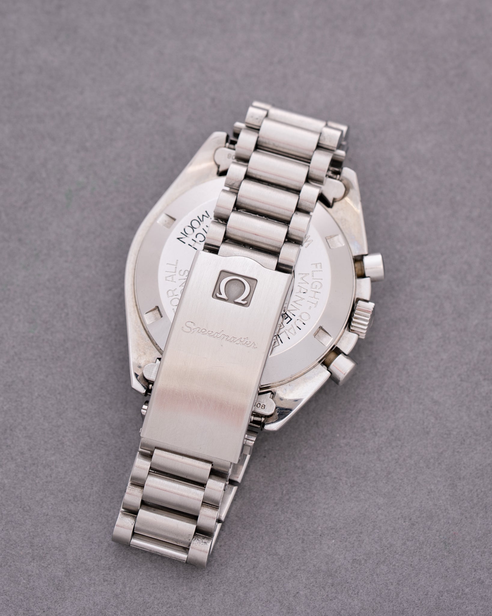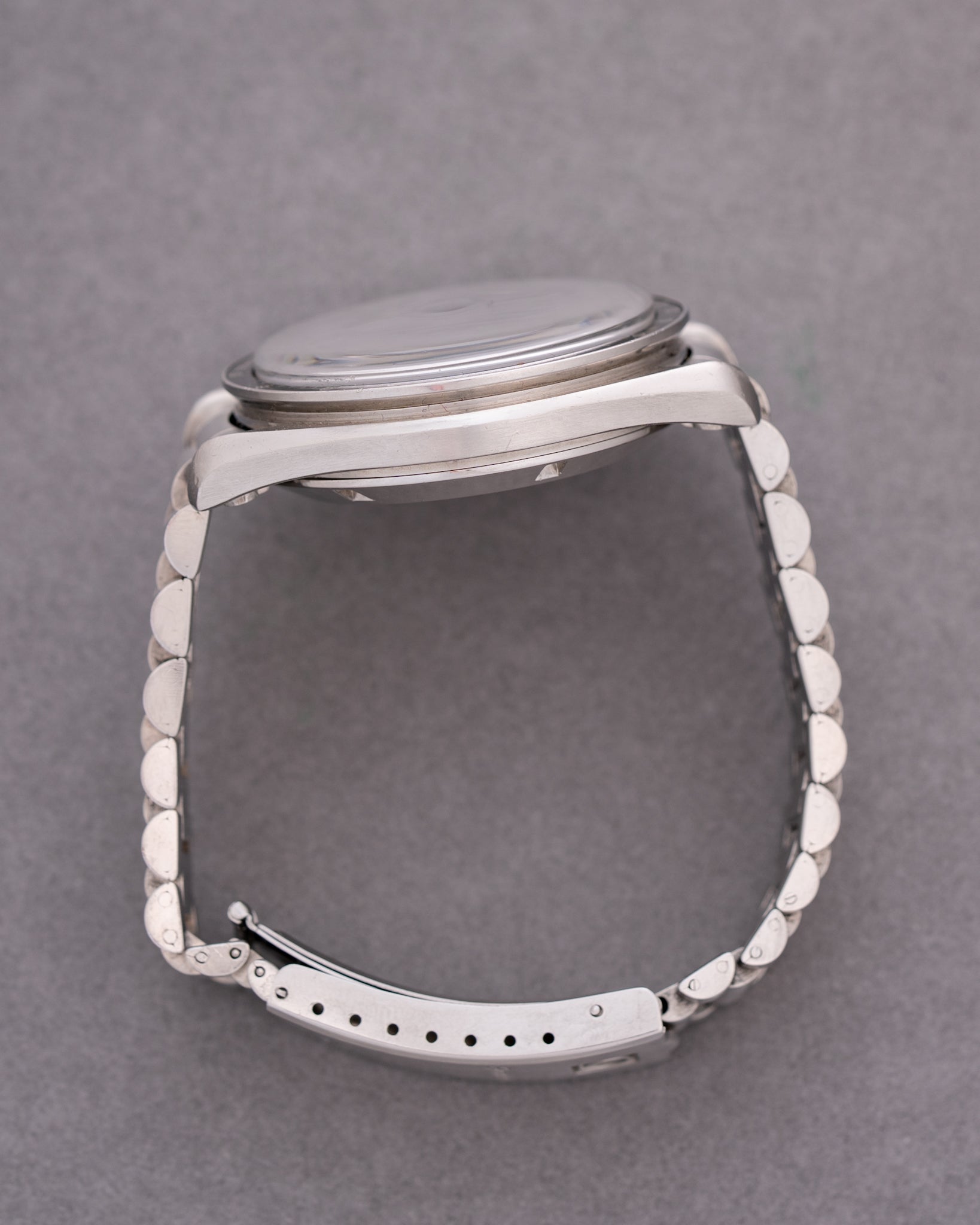 For many enthusiasts, a vintage Omega Speedmaster Professional is the way to go, despite the current Moonwatch ticking a lot of boxes. The Speedmaster Professional 145.022 is a sought-after reference that was in production for a long time (1968–1988). It consisted of several iterations, each with small updates. This one is the non-stepped dial version with the First Watch Worn on the Moon inscription on the caseback and the sought after 1450/808 bracelet.