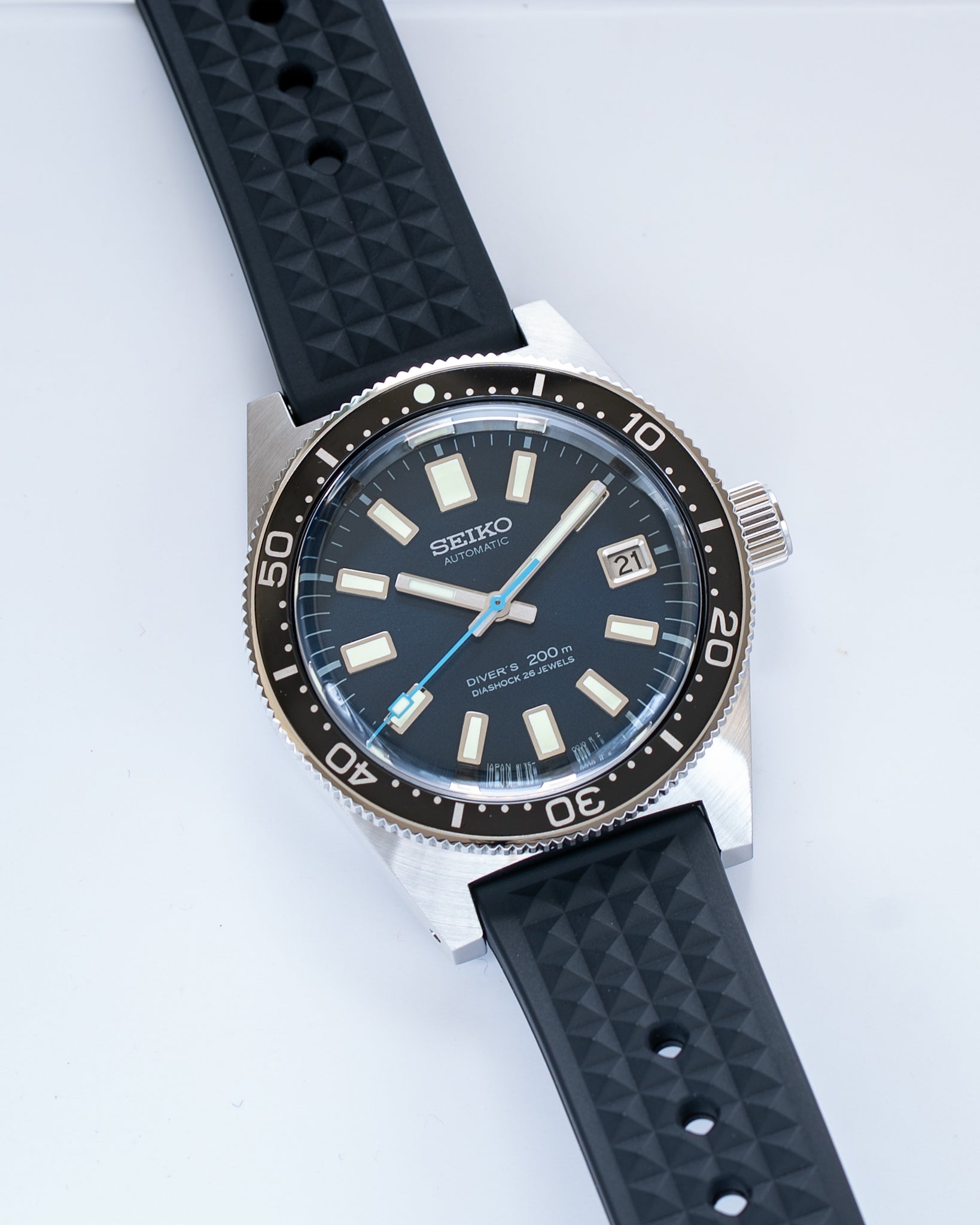 In 1965 Seiko introduced its, and Japan's, first ever diver's watch. With an automatic movement and water resistance to 150m, it proved its reliability when it was used by the Japanese Antarctic Research Expedition team in the 1960s. This limited edition diver was launched by Seiko to celebrate the 55th anniversary of that first Seiko diver's watch.