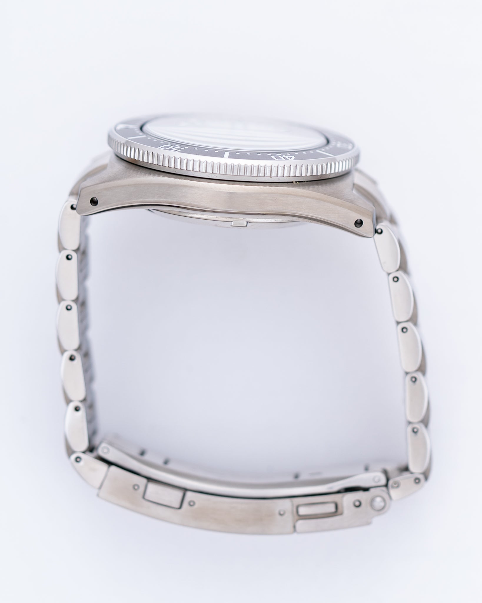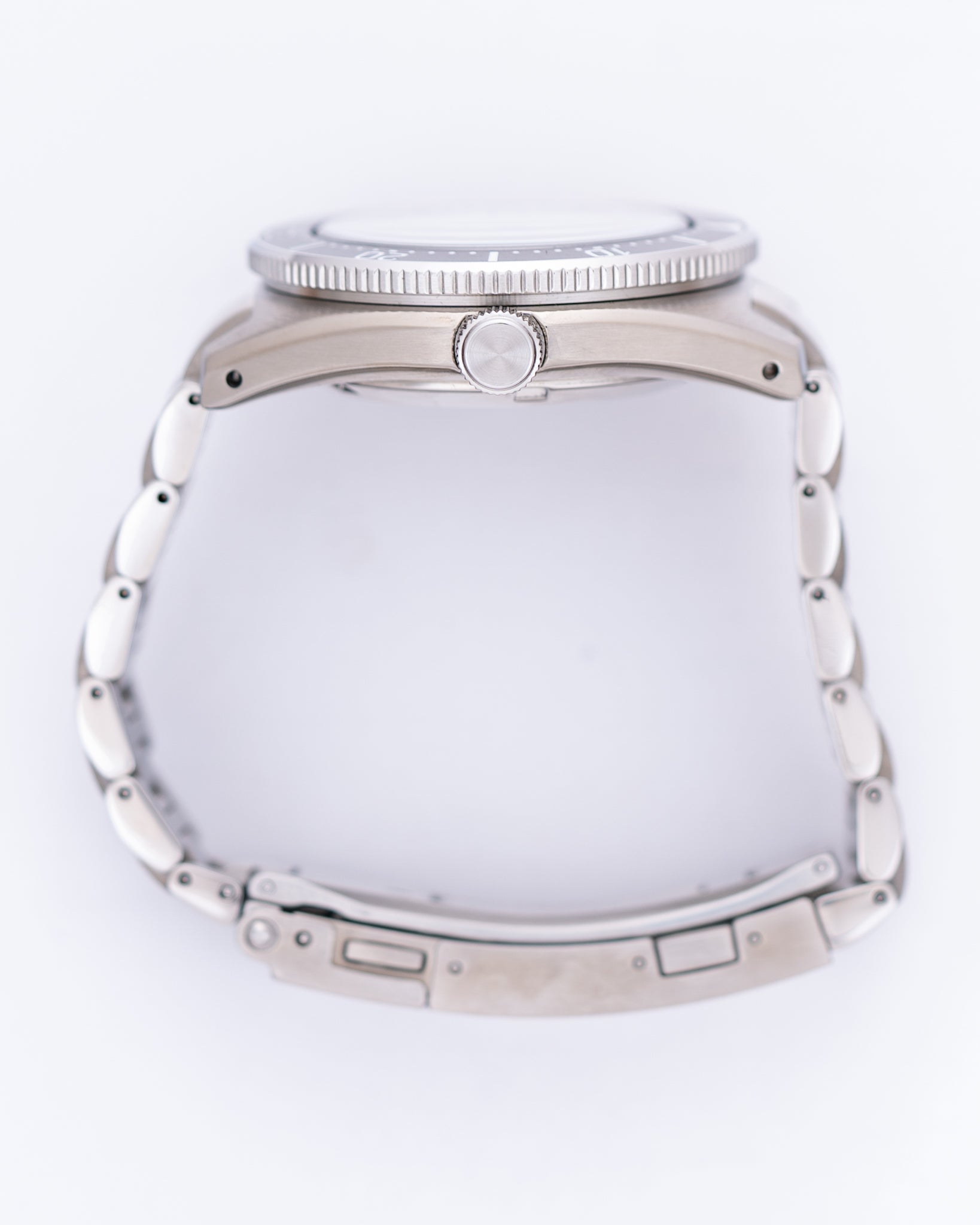 This Seiko Prospex continues to keep going forward with even better engineered diver than the regular SPB divers. Updated with more power, greater water resistance, higher legibility and a compact construction for maximum comfort, this Limited Edition, available in a controlled production run of 6,000, with the serial number engraved on each caseback, celebrates the 60th anniversary of Seiko’s 1965 first diver’s watch. This watch features a silver patterned dial that draws inspiration from the “wave” mark, created in 1962 as a symbol of high-grade water-resistant timepieces and displayed on the casebacks of Seiko’s divers to this day. The dial layout also boasts improved symmetry with LumiBrite coating on the hands and all 12 markers for enhanced visibility. Powering the watch is an upgraded movement with 3 days power reserve. This Seiko conforms the ISO standards for scuba diving to depths of up to 300 meters and boasts an upgraded bracelet made up of links with a short pitch and a specially developed slide adjuster clasp with a double lock.