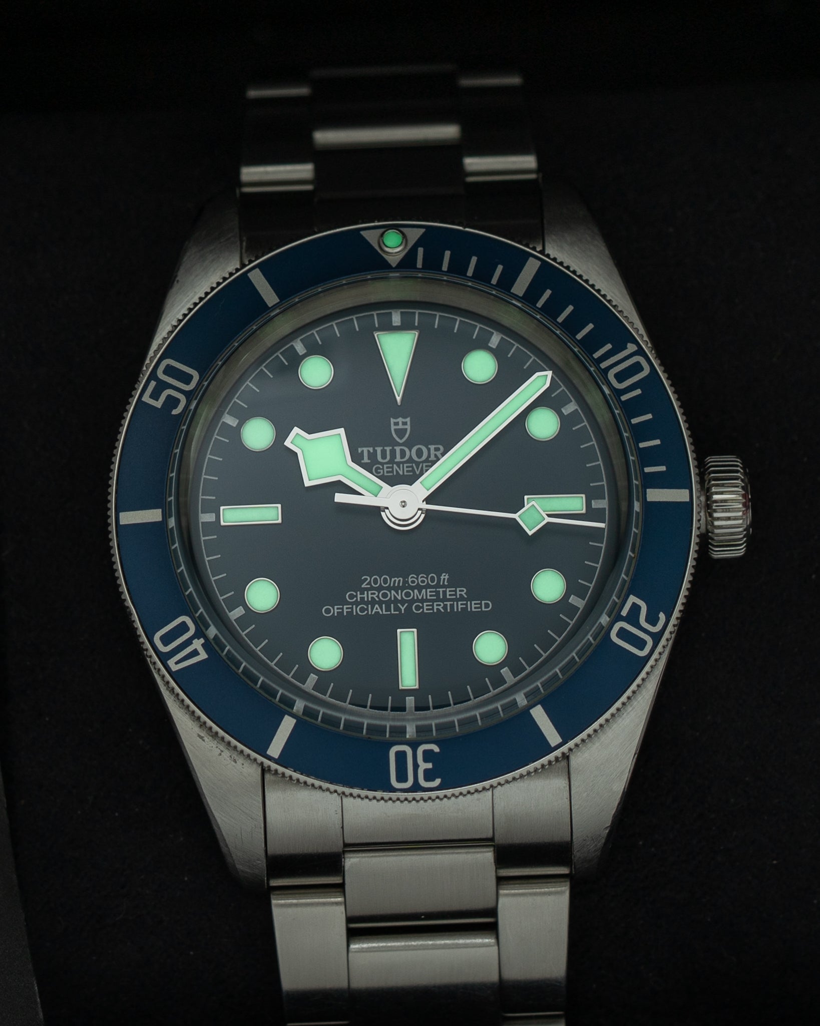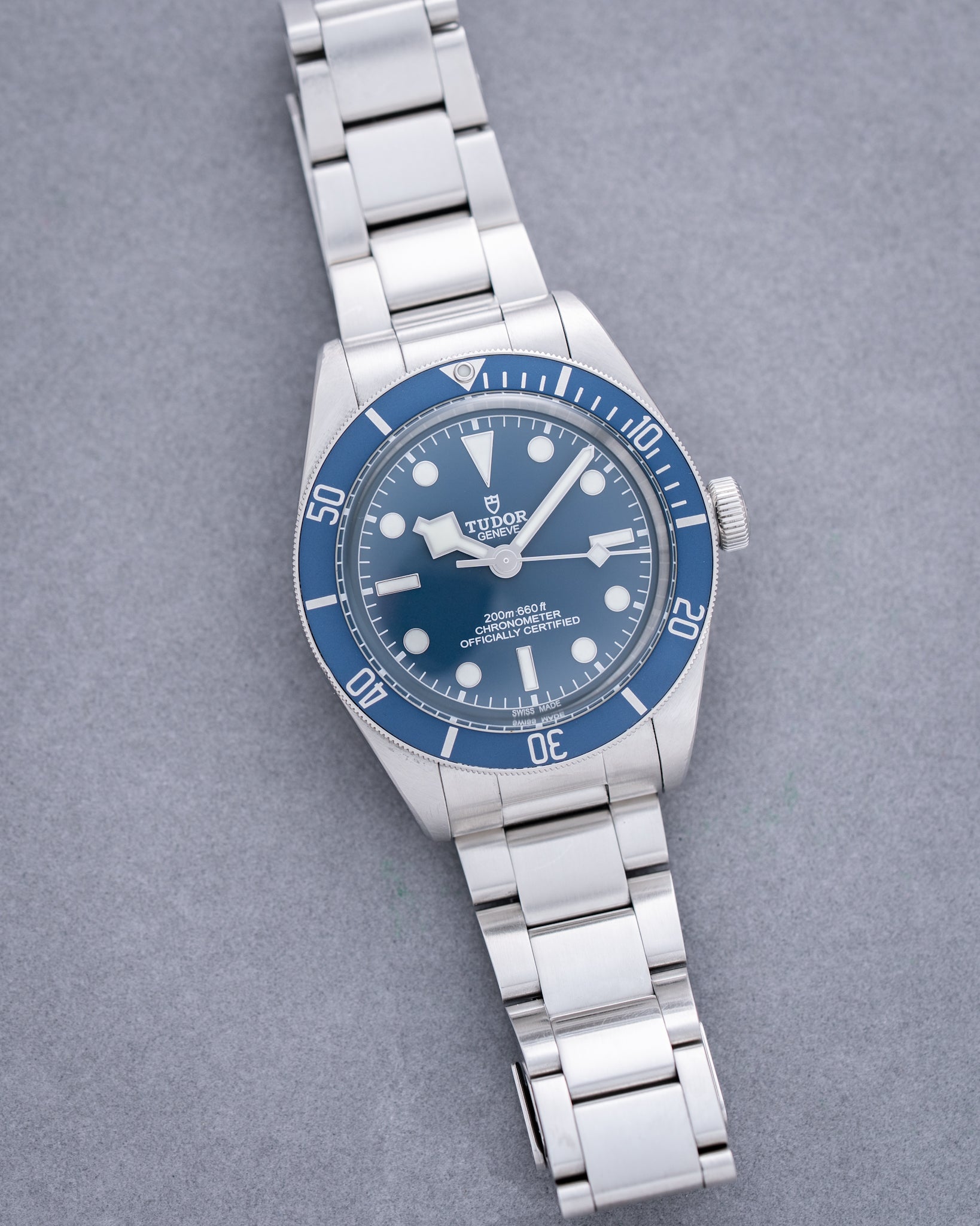 The Tudor Black Bay 58 Blue is a versatile and well-proportioned dive watch praised for its modern yet vintage-inspired muted blue dial and bezel, excellent wearability on various wrists, and reliable MT5402 in-house movement with 70-hour power reserve. Key features include its comfortable 39mm case, durable construction, and the appealing, dynamic blue color, an aluminum bezel, and the inclusion of green lume instead of blue.